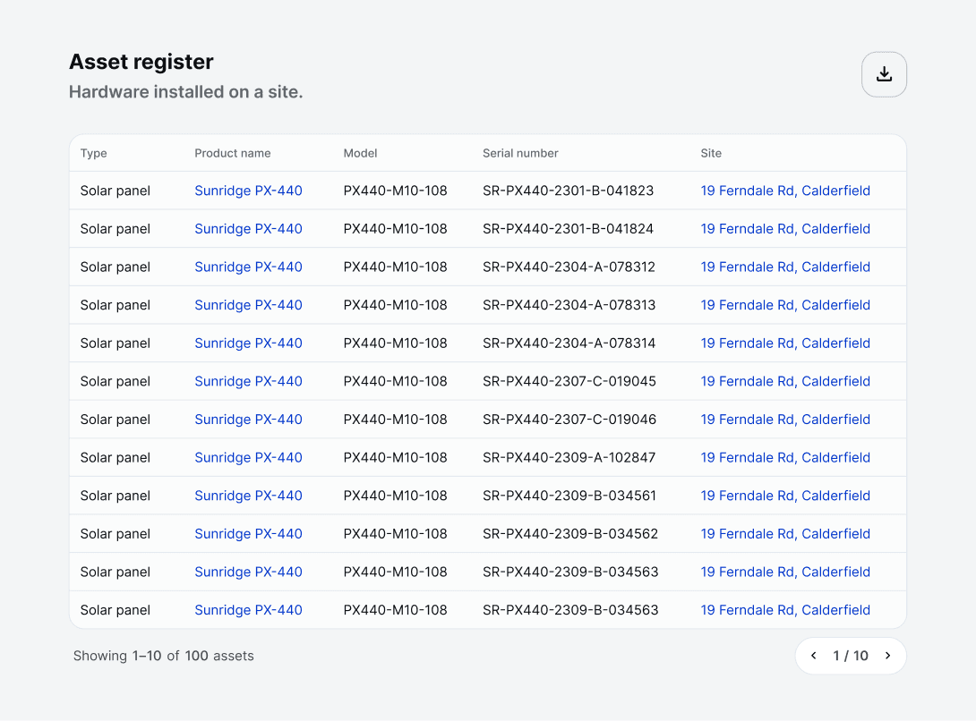 Every component, warranty, and serial number is linked to the job in UPowr. One place to check instead of logging into a different manufacturer portal for every brand.